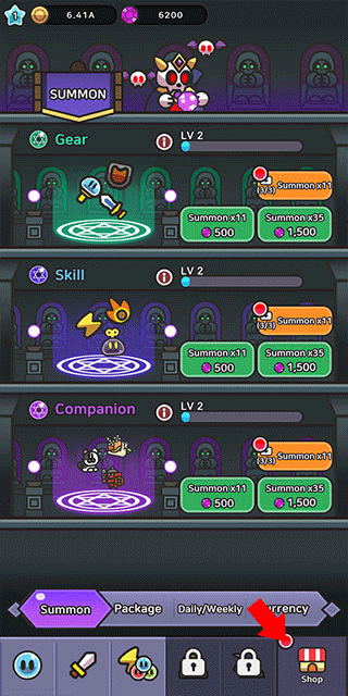3、点击界面右下角可进入商店,第一个区域是装备池,第二个是技能池,第三个是宠物池,玩家可以根据需求进行抽取。