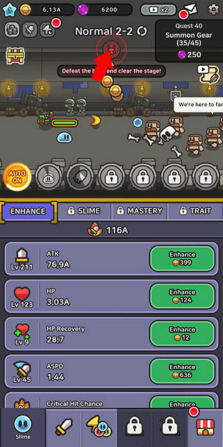 史莱姆大冒险安卓版是画风超萌的放置类角色扮演手游,让你扮演勇敢的小史莱姆,带领史莱姆族保卫森林不被入侵。游戏玩法轻松有趣,战斗过程全程自动攻击挂机,玩家只需间歇性升级史莱姆的攻击力、体力、暴击等属性,就能越战越强。随着进度提升,你还能召唤强……