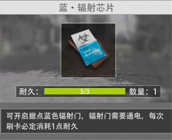 7. 蓝-辐射芯片:在绿-辐射芯片卡房内、各物资点楼梯房顶等地点刷新。