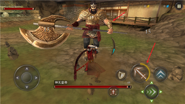 6、攻击键旁边的按钮是防御键,可以用来举起武器进行防守。