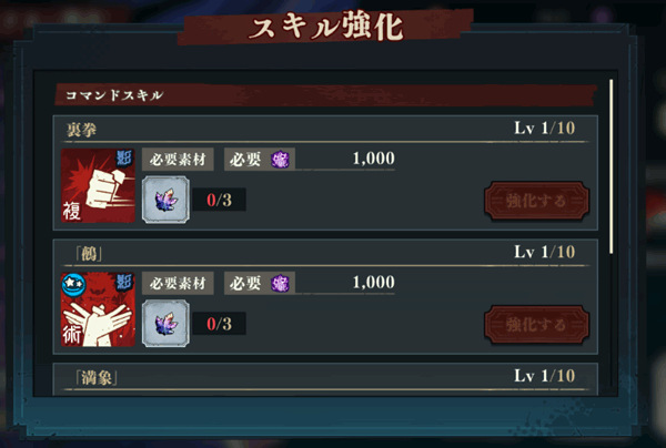 当等级和GRADE提升到一定程度后,可以通过材料强化技能。技能升级后,不仅数值更高,部分角色技能还会附带额外效果,让战斗表现更出色。