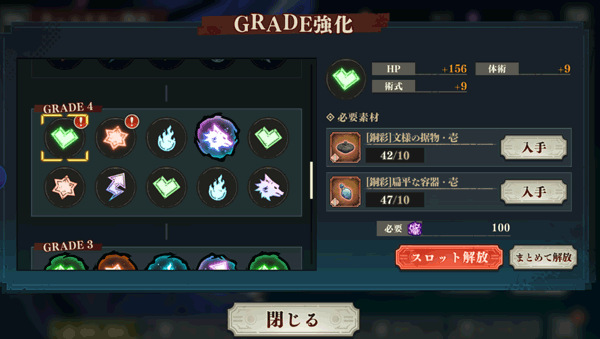 除了等级提升,还可以对角色进行GRADE强化。这种方式需要消耗关卡掉落的专属材料,不仅能提升基础属性,还能在完成一个阶级后解锁新的等级上限,让角色成长空间更大。