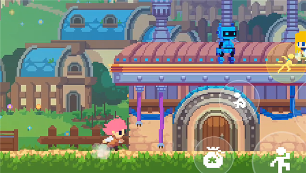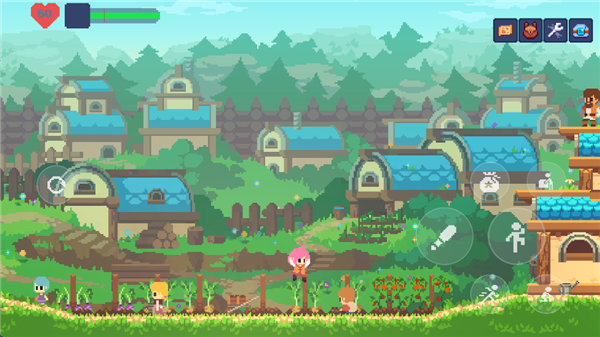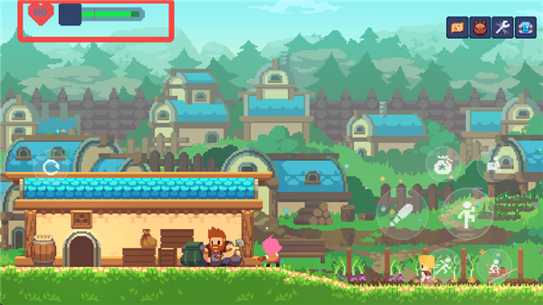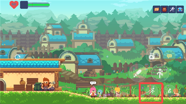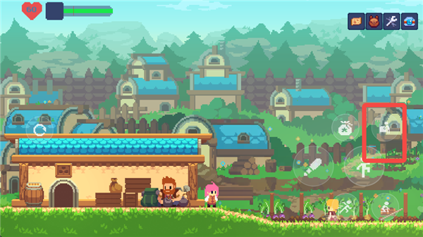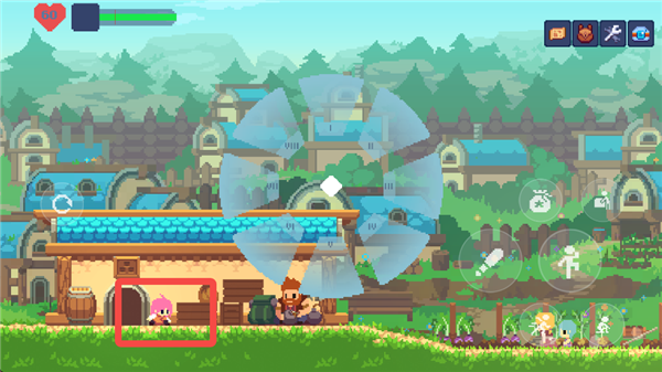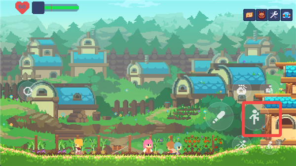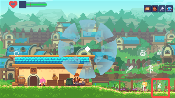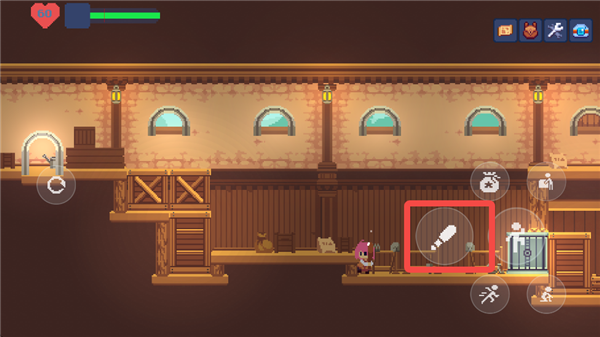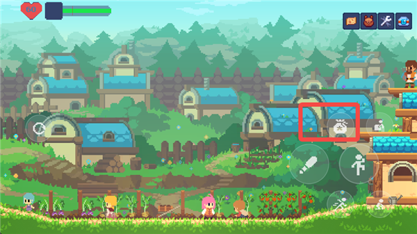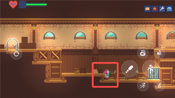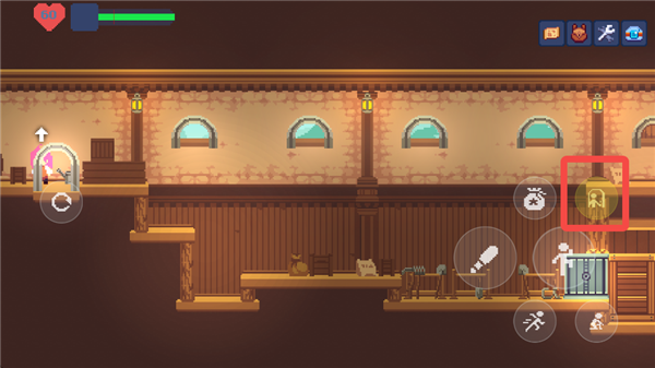 游戏中的主要交互键位于右侧按键的最上方,用于与NPC和场景进行互动。在这个状态下,按下交互键和方向键可以推动场景中的箱子,从而到达更高的地方。