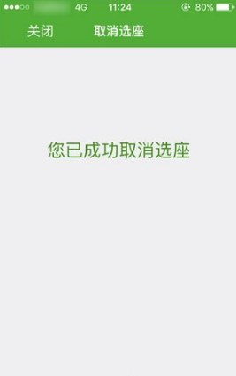 第五步:进入“取消选座”结果页面,查看选座结果,提示“您已成功取消选座”,证明您已经成功取消值机(选座);