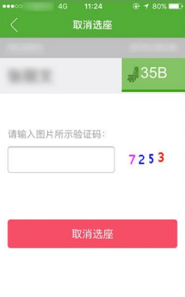 第四步:进入“取消选座”输入码页面,按照图片提示输入验证码,并点击下方【取消选座】;