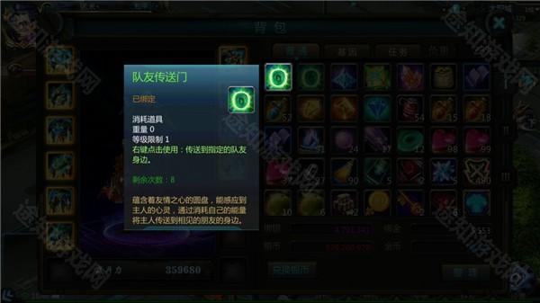 1、点击右下角背包图标可以打开物品背包,背包界面右侧切换不同编号的背包。