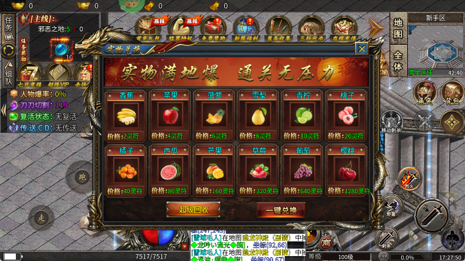 击杀怪物可掉落大量实物,实物可兑换充值货币