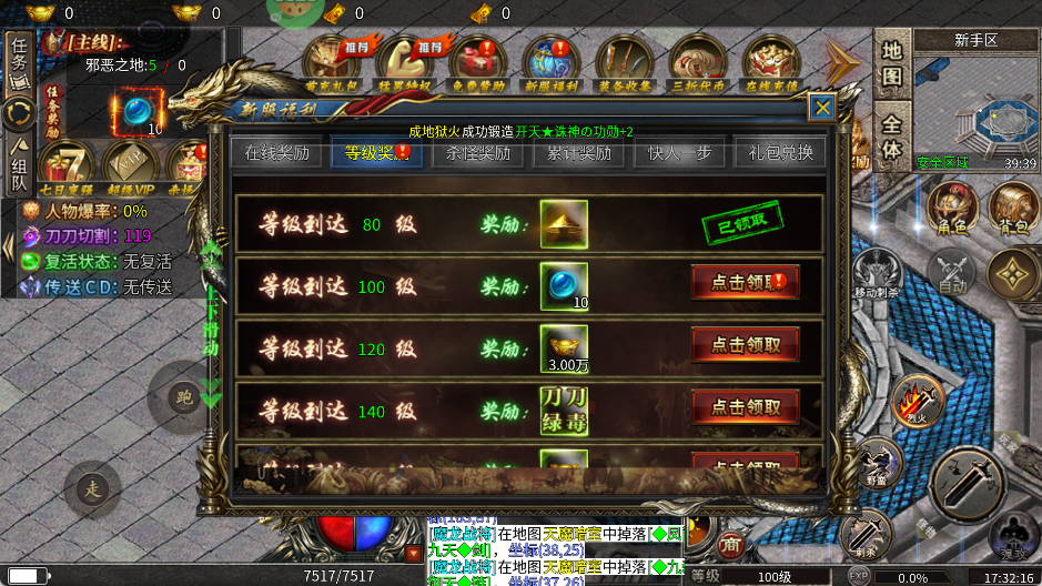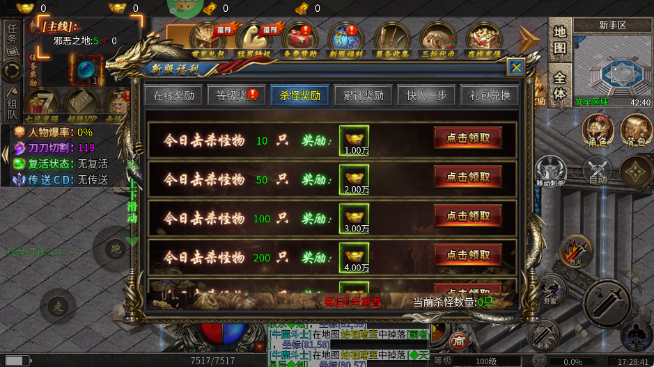 杀怪即可获取奖励和进行抽奖,可免费开通赞助提升VIP等级