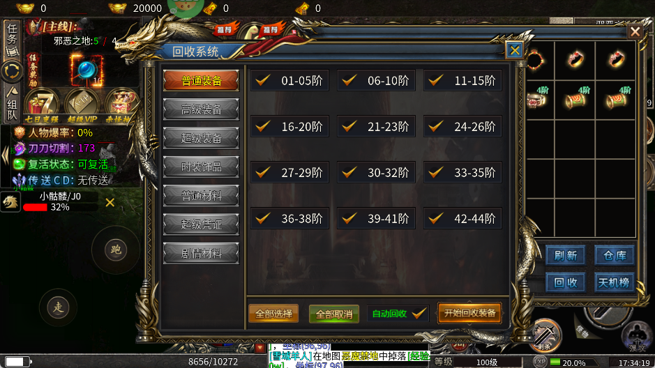3、游戏拥有回收机制,记得随时用自动回收,把无用装备转化为资源。