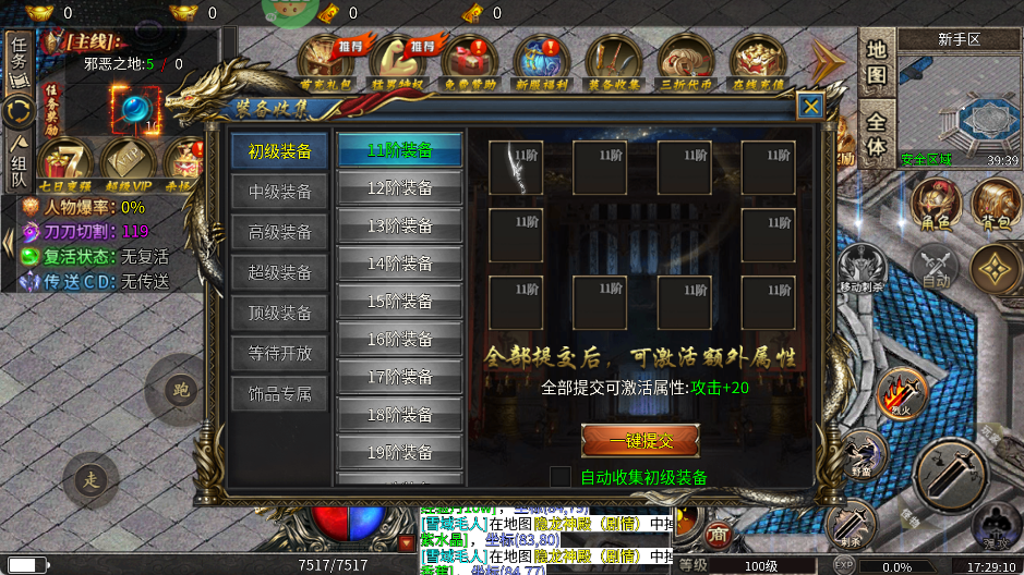 1、进入游戏后,先把系统赠送的福利一键领取,包括自动拾取、自动回收功能。这些都能让你解放双手,轻松挂机刷怪。