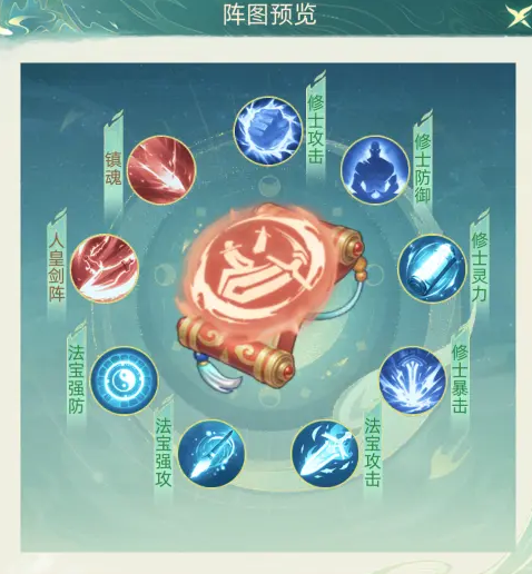 1个阵法技能(如人皇剑阵、八卦法阵等)