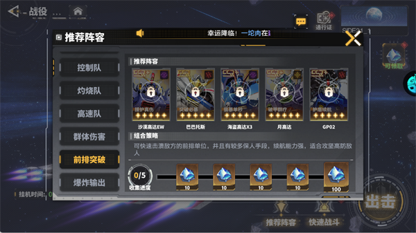 阵容:V 高达冲击型、沙扎比、蓝异端二型 R、法尔西亚、强袭杰刚