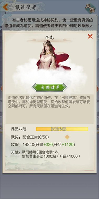 三、升品(提升道使攻击力+提升尊主属性)