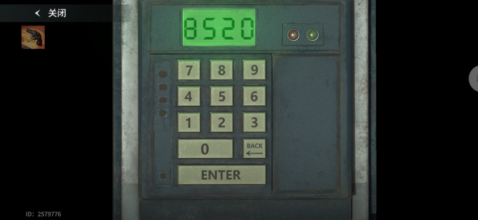 9、返回之前找到配件的柜子附近,旁边有一台输入装置,输入密码后,将会解锁通往外面的房门。
