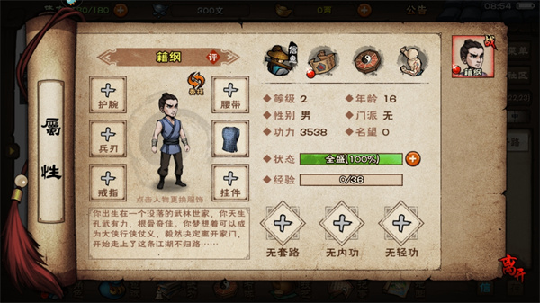 角色面板:可查看角色的等级、属性、装备、武学等信息,方便了解角色的成长情况。