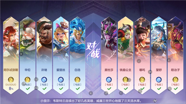 3、进行5v5对战时,选择一名你擅长的英雄。