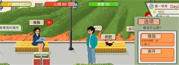 社交互动:与室友、同学、老师等NPC互动,提高好感度,扩大社交圈。
