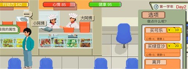 校园生活模拟:像素画风生动地重现了大学校园的各个场景,如宿舍、图书馆、食堂等。