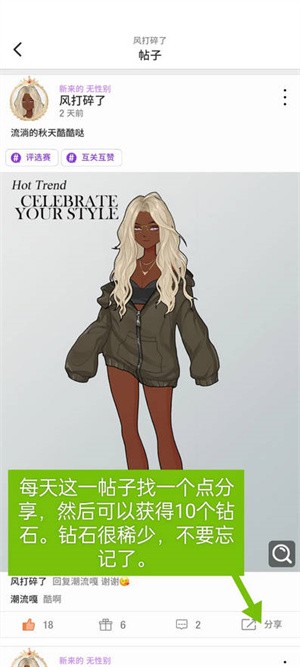 12、任务奖励的钻石保底只有40个,因此你需要每天分享,以确保每天有50个钻石。