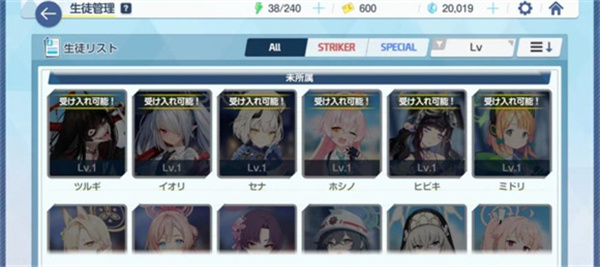 根据个人需求安排学生的日程,以获得好感度(必得)、技能升级材料(概率获得)和碎片(概率获得)。