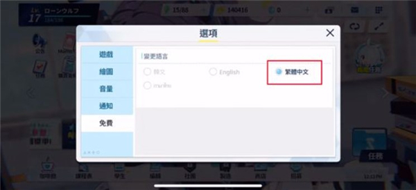 3. 将语言设置切换为“繁体中文”。