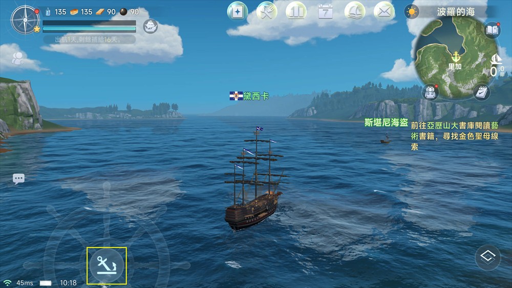 出海后,点击界面左下角的船舵中的锚链按钮即可出发,再次点击即可缓慢停船。长按舵盘的任一侧,船只就会按照所按方向缓慢转向。