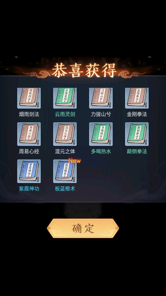 3、选定后,你将获得与所选修炼方向对应的秘籍,点击确认领取。