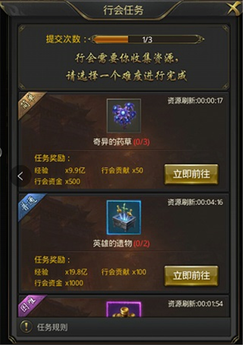 3、玩家每天可以完成三次行会任务。