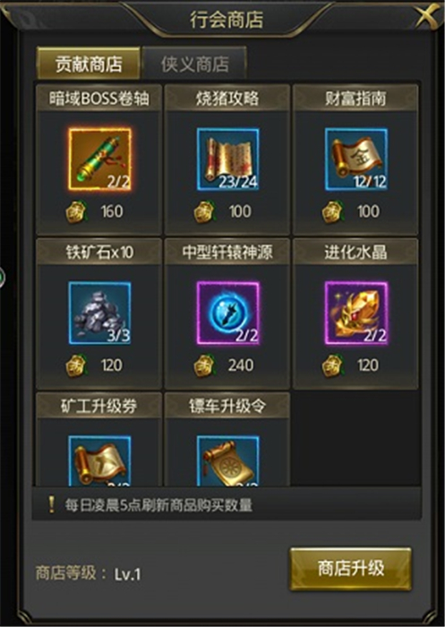 2、行会商店是专为行会成员提供的免费商城。