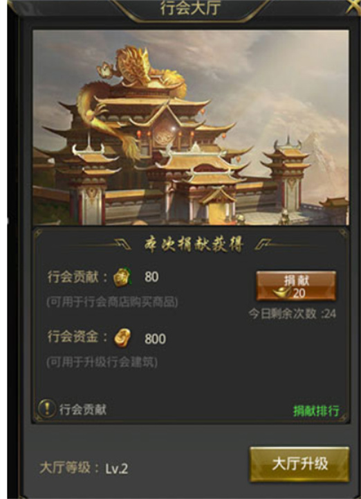 行会大厅是你们行会的基地。在这里,你可以享受挂机经验加成,并解锁行会商店和行会家园两个功能。随着行会等级的提升,挂机经验加成会逐渐增加,同时行会商店和家园的等级上限也会提升。