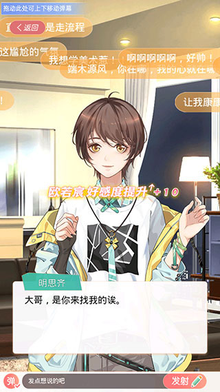 3、故事的发展主要通过对话和选择来进行,下方还可以输入弹幕进行互动。