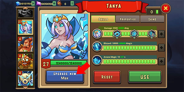 2、进入后可解锁更多英雄,并对已解锁的英雄进行升级,升级后即可获取经验点,可用于提升英雄的技能等级