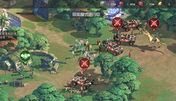 在里面,你可能遇到NPC势力的军队,或者是各种野生的巨兽,你需要击败他们,才能够将这块区域划归到你的基地范围,然后在上面建造各种设施。