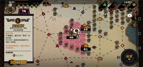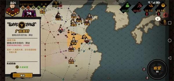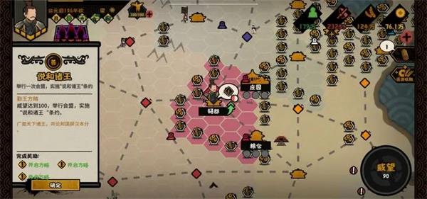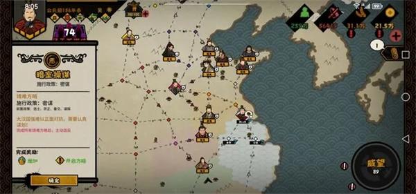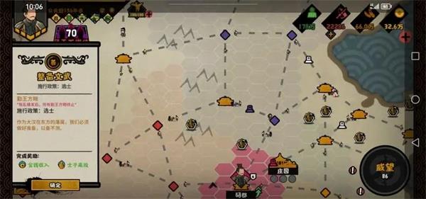 我就拿这个图来举例说明孤立的操作方式,这里A—F藩王不满度都是在30以下的,因此A藩王能被B、C同时孤立触发夺城;B藩王被A、D同时孤立触发夺城;C藩王被A,D,E同时孤立触发夺城;D藩王被B、C、F同时孤立触发夺城,同理E、F也是如此。相反拉拢也如同上面的操作一样只不过是反向操作了而已。其中要注意的是第二列和第三列这两列不会有任何孤立和拉拢操作,因为2、3列是独立的。而孤立成功获得被孤立国家的城池,但是会加该国的20不满度,建议谨慎使用。拉拢是在70不满度以上触发,对邻近国家加15不满度。虽然有座位帮助降低不满度,但是最好不要超过70不满度,否则叛变机率非常大的。