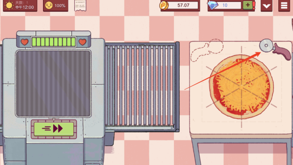 5、将比萨放置在传送带上;