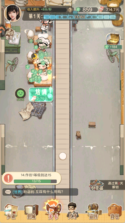 通关后可以提升收入,关卡的等级越高,培训员工所获得的每秒收入就越高,这也是游戏中提升赚钱速度的小技巧之一。