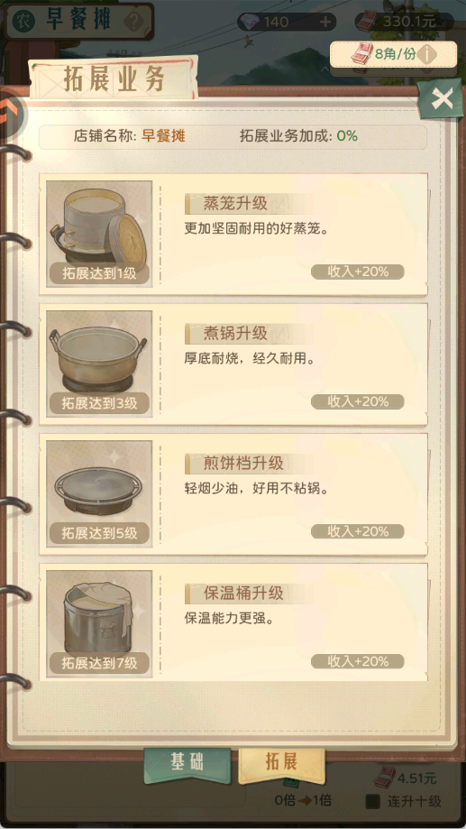 1、消耗财富,可以提升店铺拓展等级、解锁拓展业务,大幅提高店铺收入。