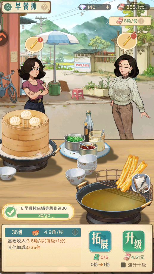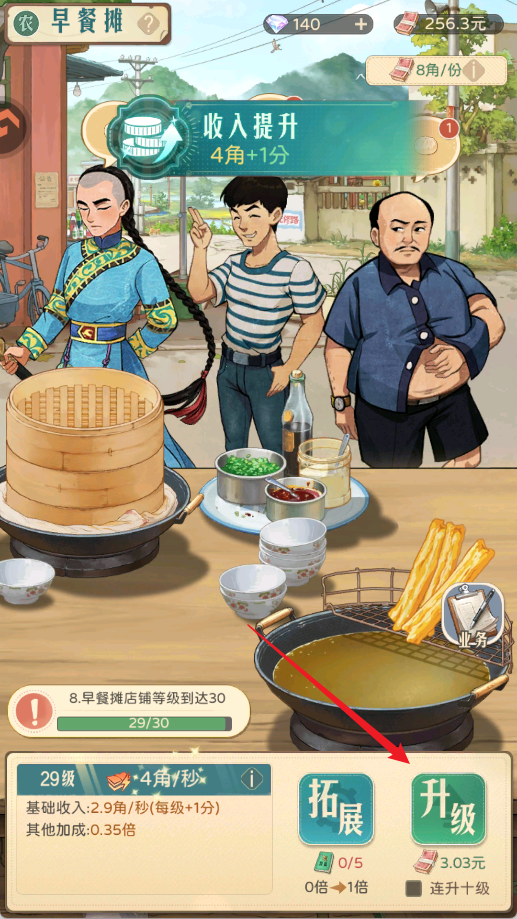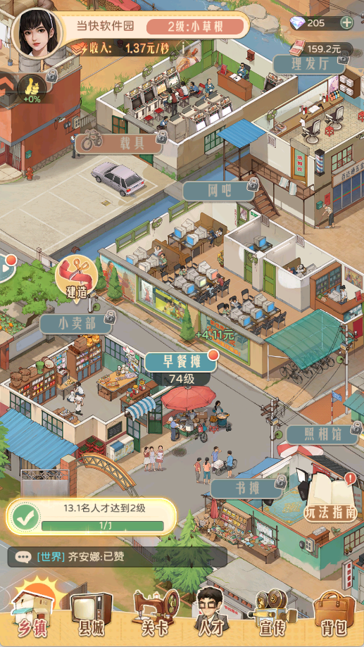 1、消耗现金可以升级店铺,提高店铺收入。