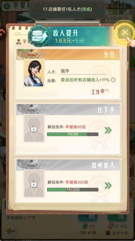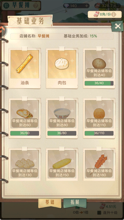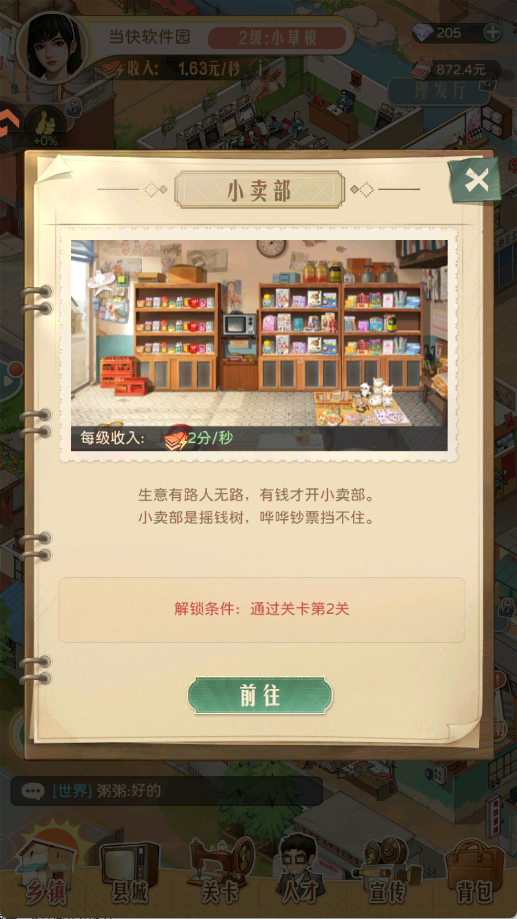 2、升级店铺达到一定等级,可以解锁更多店铺业务,进一步提高店铺收入。