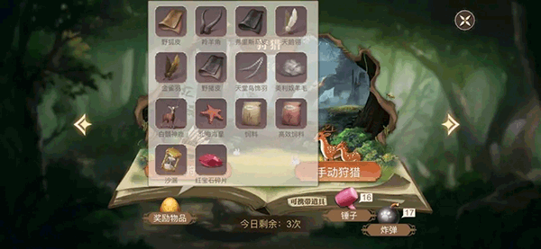 因为采集和打猎的次数每天有限,最多3+3,而且采集和打猎分别有四个地图,每个地图中给出的材料也不一样。采集是玩泡泡龙游戏,打猎是消消乐,两个游戏都需要在2分钟内获得最多30个奖励。泡泡龙的奖励球是带树叶的,打猎的是图标上带个很小的蛋,都是消除了就拿到了奖励,而30个奖励中的奖励都是随机的。