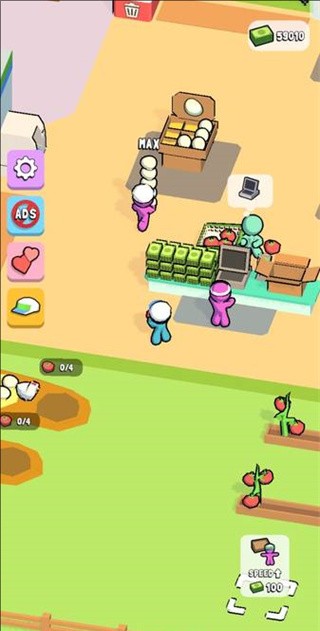 1、游戏开始后,我们首先需要解锁一些货架,以便开始销售商品。