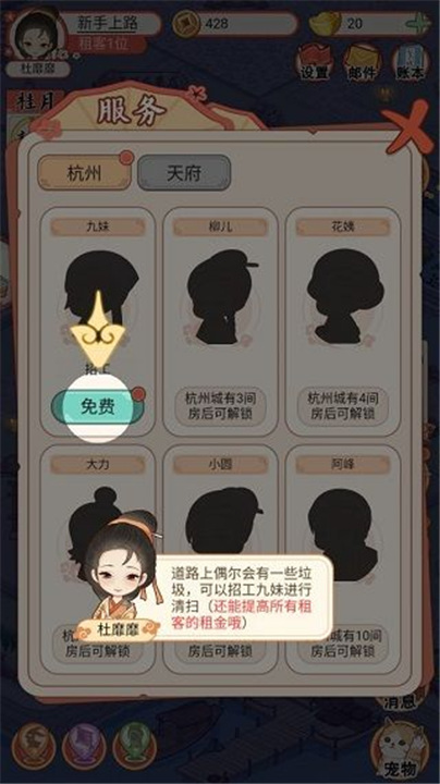 2、现在你就是房东了,首先根据提示招募一名租客。