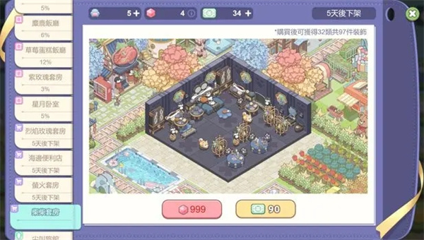 限量主题家具可以用粉钻石兑换或绿钞购买,部分还可以用钻石购买获得,粉钻石可以通过家具货车、上榜室内布局大赛排行榜、集齐收集主题家具套装中获得,也能使用绿钞购买,无需等待就能直接获得一整套装饰。
