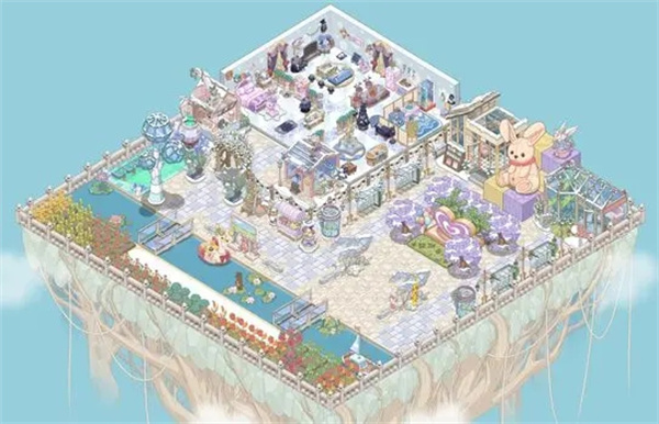家园岛由室内和庭院组成,室内可以摆放装饰家具,庭院可以种田钓鱼