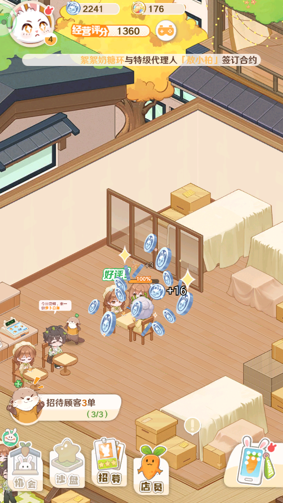 3、可以招募各种可爱的店员,提高运营效率,并通过升级来强化他们的工作表现。