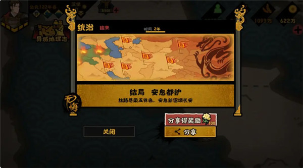 在国家任务中,玩家可以征服西域小国,招募当地士兵卡牌来增强军队实力。所有国家任务完成后,玩家将解锁普通结局(西通大秦),若所有任务都圆满完成,还将迎来高级结局——【西通大秦与安息都护】。