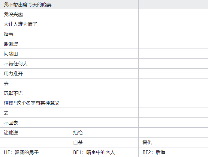 4、BE分支包括:后悔(百合子毒杀斯波,事后悔恨)、暗室中的恋人(斯波囚禁折磨百合子,剧情较重口味)。