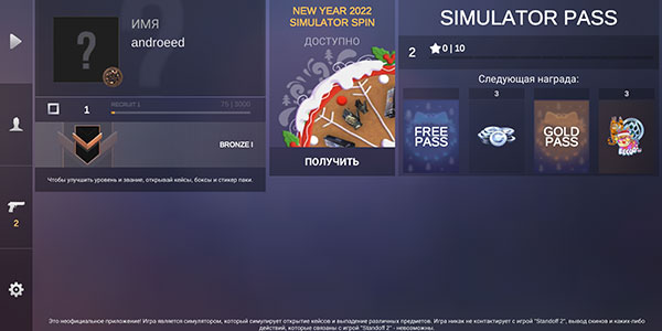 1、打开《对峙2》开箱模拟器后,左侧会显示一个导航菜单栏,第一个选项右侧就是模拟通行证的入口。