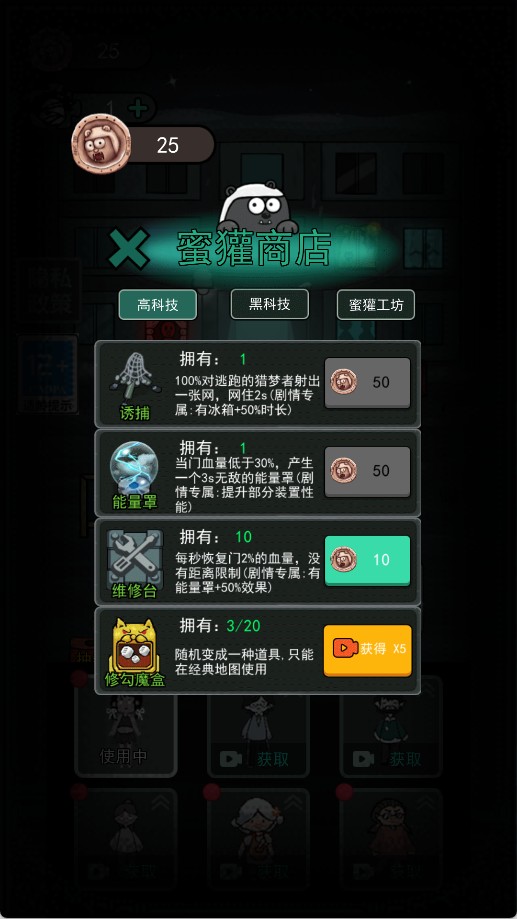 3、随着关卡的提升,玩家需要不断调整战术,升级设施来应对更强大的猛鬼。