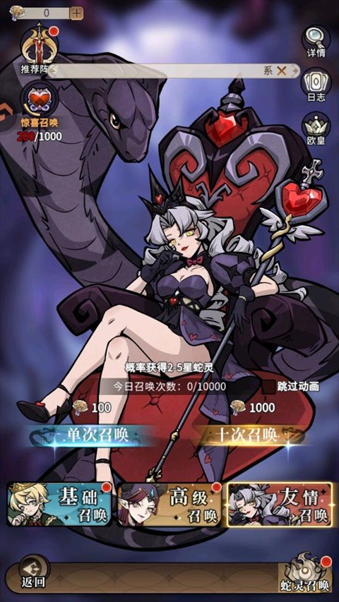 众多蛇灵各具特色,每一个都能被深度培养。无论是冷艳的女王还是天真的小红帽,每一位蛇灵都需要你的陪伴。好感度每提升一分,战斗力就增强无限。还有专属的故事剧情等待解锁。在并肩作战中,发现她们不为人知的过去,建立独特的深厚情感。